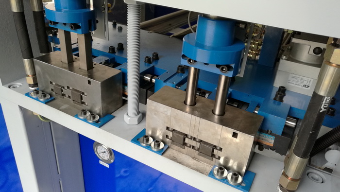 6、裝模、換模簡(jiǎn)單,機(jī)臺(tái)上有定位裝置,模具對(duì)準(zhǔn)定位裝置后鎖緊螺絲即可;