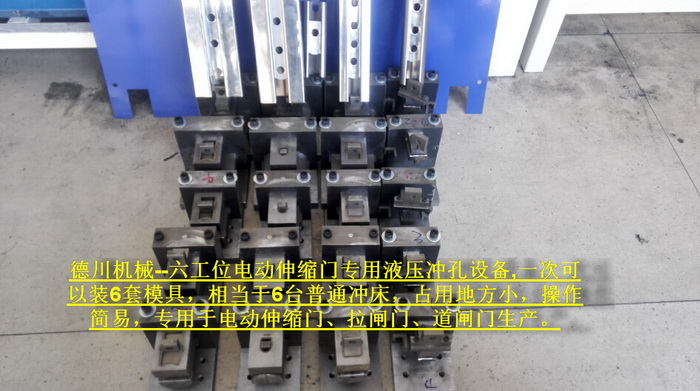 六工位電動伸縮門專用液壓沖孔設(shè)備,一次可以裝6套模具,相當(dāng)于6臺普通沖床,占用地方小,操作簡易,專用于電動伸縮門、拉閘門、道閘門生產(chǎn)。...