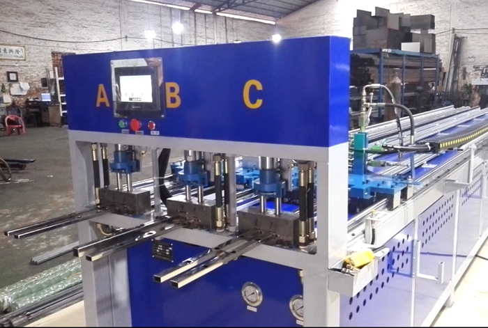 福建漳州客戶今年第二臺(tái)三工位數(shù)控全自動(dòng)沖孔機(jī),三工位同時(shí)工作,一次沖6支管,每個(gè)油缸可單獨(dú)控制沖全孔、半孔,大大提高不銹鋼防盜網(wǎng)沖孔效率,行業(yè)首創(chuàng),專利產(chǎn)品